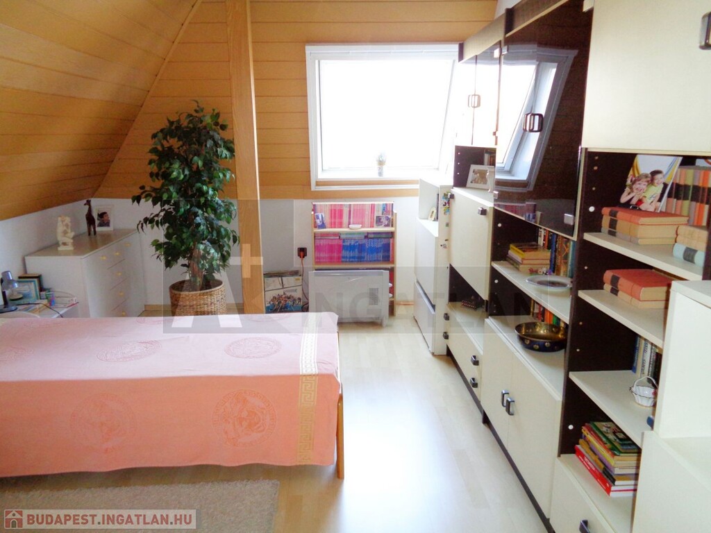 A felső szintre lépéskor szintén egy nappali tárul elénk, melyből nyílnak a praktikusan külön bejáratú hálószobák és egy fenti fürdőszoba.