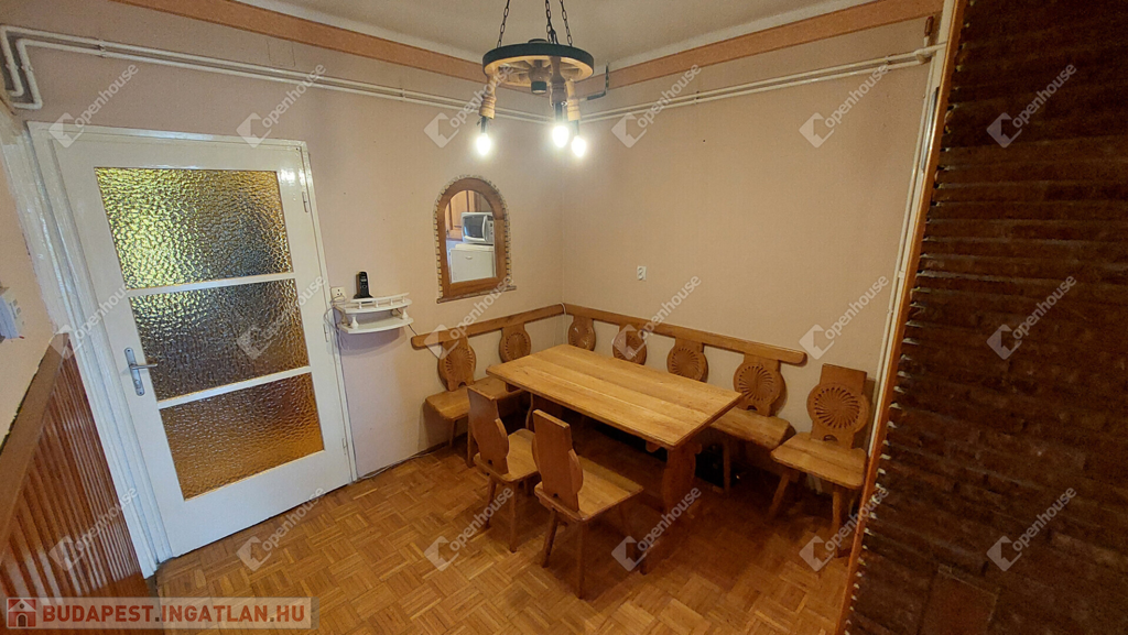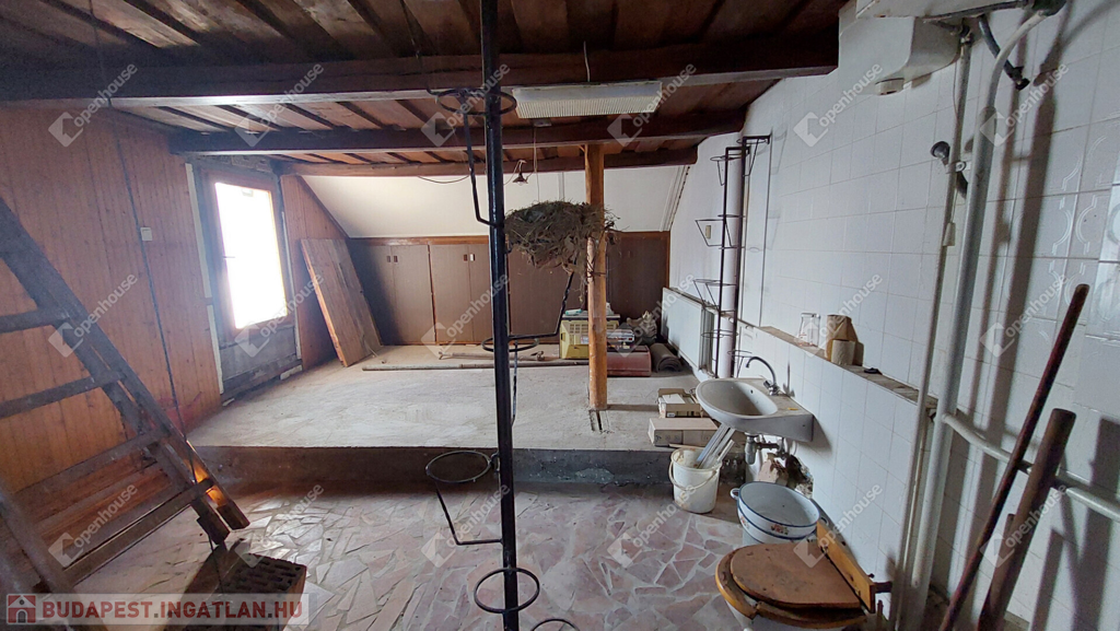 Tetőtér: beépített, burkolata kő, a víz- és villanykiállások előkészítve (mosdó, WC, zuhanyzó), mennyezete esztétikus, gerendás