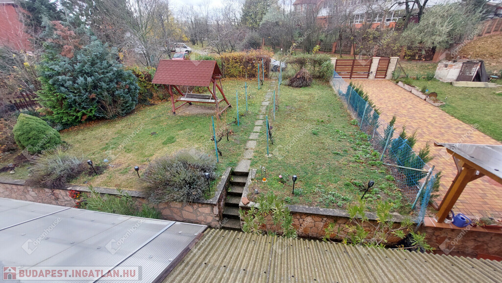 Földszint: előszoba, külön WC, konyha kamrával, tágas nappali; a bejárat előtt nagy terasz, ahonnan néhány lépcsőn keresztül, szintkülönbséggel juthatunk a gondozott kertbe. A nappalihoz nagy erkély tartozik..