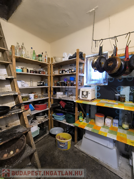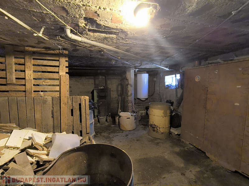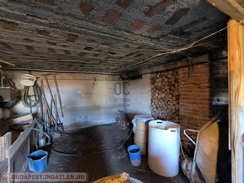 A ház részben alápincézett (a két első szoba kivételével), tüzifa illetve termény tárolására is alkalmas, de itt található a központi fűtésért felelős vegyestüzelésű kazán - gázvezeték az utcán található, nincs bevezetve -, valamint a melegvíz ellátásért felelős villanybojler is.