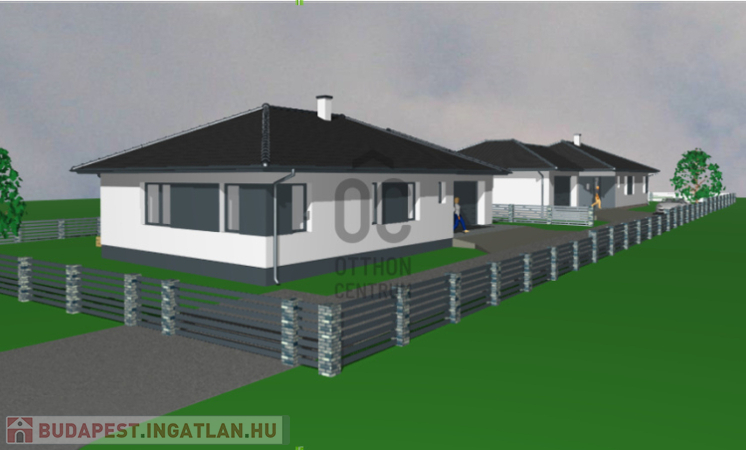 Az előírásoknak megfelelően 5m-es előkerttel és 6 m-es hátsóoldali távolsággal épülő MODERN EGYSZINTES HÁZ, tágas nappali-étkezővel, melyhez kapcsolódik a konyha , illetve a pergolás TERASZ, valamint a konyha teréből nyíló kamra is.