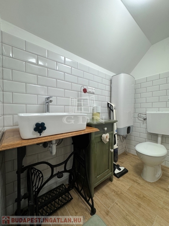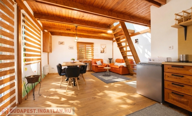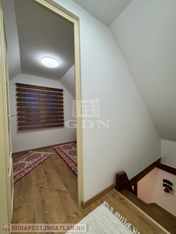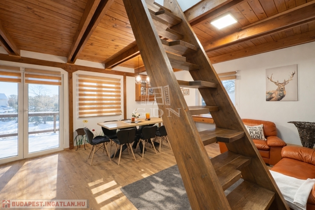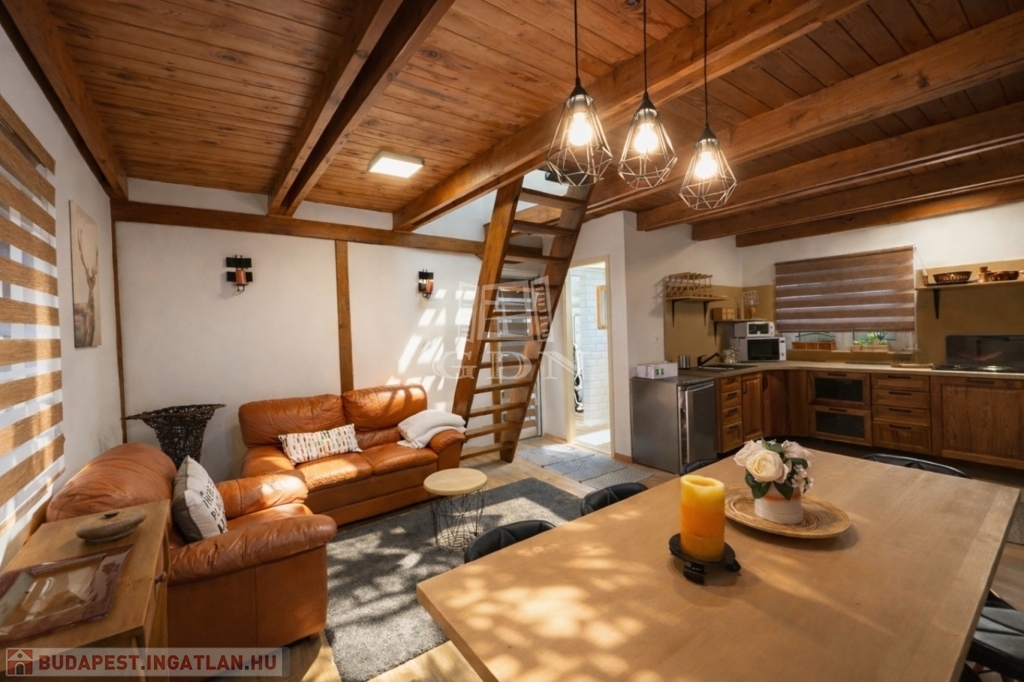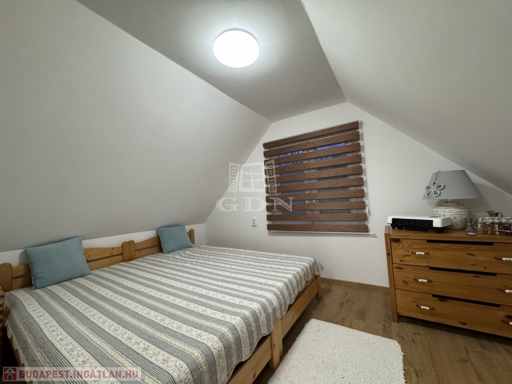 A földszinten amerikai konyha, fürdőszoba és WC található. A tetőtér beépített, két szoba került kialakításra.