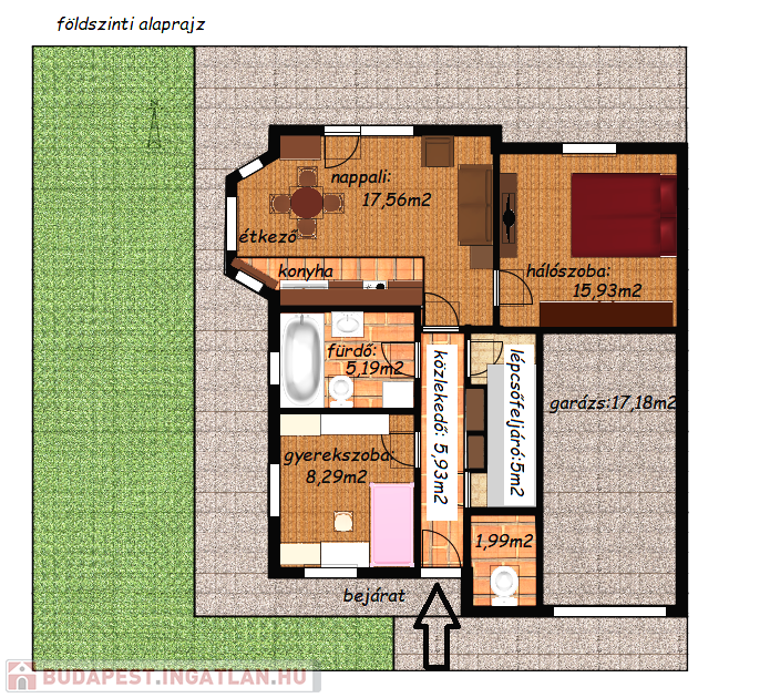 - 17m2-es fűtött garázzsal, mely távvezérelhető, elektromos ajtóval ellátott