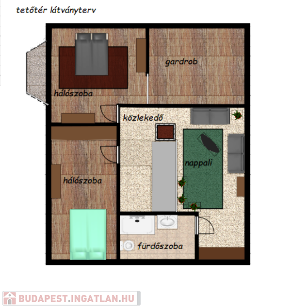 -a tetőtérbe a feljutás lakáson belül történik, de akár kívülről is kialakítható, így a felső szint akár egy külön generációnak kialakítható,