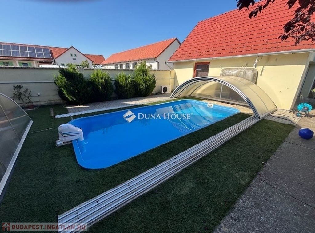 Eladó kivételes családi ház Palkonyán a villányi borvidék központjától mindössze 5 percre!Palkonya település falusias, nyugodt környezetében kínáljuk eladásra ezt a kiváló állapotú, kétszintes, összesen 180 m²-es (nettó kb. 160 m² lakótérrel rendelkező), 6 szobás, modern felszereltségű családi házat, amely egy 980 m²-es telken helyezkedik el. A ház 20062007-ben épült, majd 2019-ben a tetőtér beépítésével vált teljes értékű, kétgenerációs otthonná.A tökéletesen karbantartott ház kiemelkedő hőtartással, modern energetikai megoldásokkal, fedett medencével és 2 állású garázzsal várja új tulajdonosát.Ezt látni kell! Főbb jellemzőkLakótér: 180 m²Telek: 980 m²Szobák száma: 6.Tetőtér beépítése: 2019 .Állapot: kiváló, folyamatosan karbantartottÉpítészet: modern, nagy terek, világos, átgondolt elrendezés Helyiségek elosztásaAlsó szint:előtérétkezőkonyhanappali3 hálószoba2 fürdőszobakülön WCkamraháztartási helyiségtélikerttornácteraszFelső szint:tágas előtér3 hálószobafürdőszobakülön WCA két szint külön bejárattal leválasztható, így akár kétgenerációs lakhatásra is tökéletes. Műszaki tartalom, felszereltség8 kW teljesítményű napelemrendszerHűtő-fűtő klímákKombi gázkazán radiátoros és padlófűtéses körrelKandalló a nappalibanMelegvíz: villanybojler + gázkazánVízlágyító berendezésJó állapotú fa nyílászárók, szúnyoghálóval és zsalugáterrelRiasztórendszer, kamerarendszer, automata öntözőrendszer Külső kialakítás és extrák6×3 méteres, fűtött (hőszivattyús), fedett medence egész évben használható2 állású garázs2×1,1 m³-es víztartályGondozott, igényesen kialakított udvar Kinek ajánljuk?nagycsaládosoknakkétgenerációs együttélésrebefektetőknek (vendégházként vagy apartmanként is kiváló)mindenkinek, aki modern, energiatakarékos, extra felszereltségű otthont keres a villányi borvidék közvetlen közelébenEzt az ingatlant látni kell!Kérjen további információt vagy egyeztessen időpontot a megtekintésre!