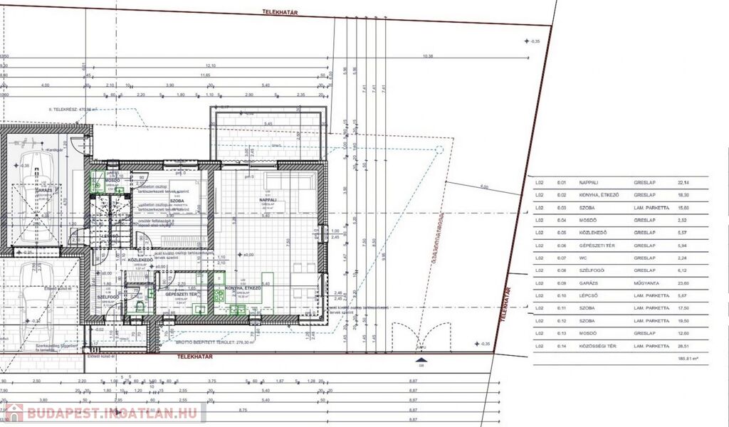 • 23,6 m² garázs elektromos kapuval +2 kocsibeálló