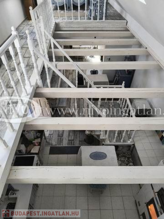 Az épület hasznos alapterülete ~ 130 m2, két szintes. Az alsó szinten található a nappali, az étkező, a konyha, a háztartási helyiségek (tároló, kamra), a fürdőkádas fürdőszoba és egy külön WC. A tetőrétben 9 db új tetőablak gondoskodik a természetes fényről, a tetőtér szigetelt, gerendákkal ellátott. A földszint egy légtérben van a tetőtérrel, igény szerint külön szobák is kialakíthatóak, de jelenleg egyterű az épület. Helyet kapott még ezen a szinten egy WC kézmosóval. A ház főbejárata egy biztonsági acél ajtó, hátsó kijárat egy dupla üveges/zsalugáteres ajtó, ahonnan a hátsó, fallal övezett kavicsos udvarra lehet kijutni. A háznak az első oldalán fedett gádor van.