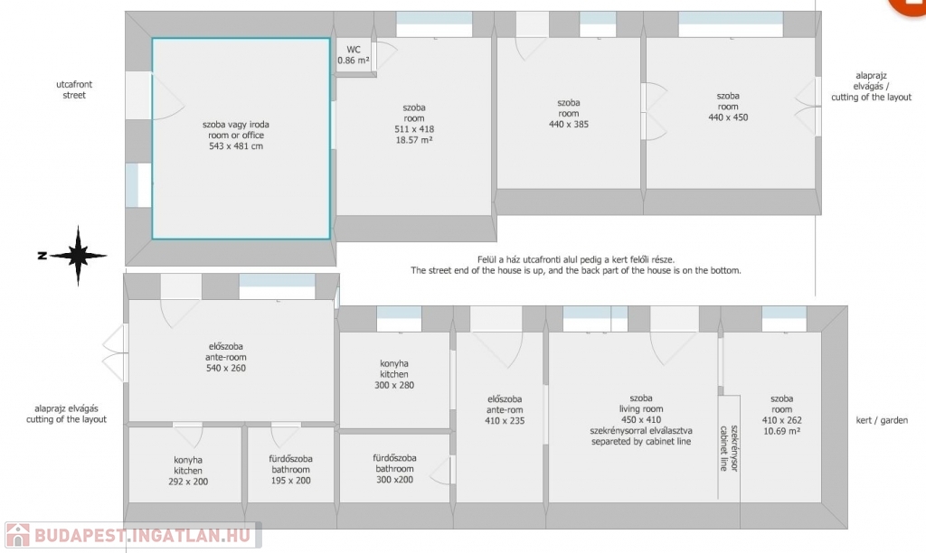 Az ingatlan bejárata a város főutcájára néz, ezért üzleti-irodai célra is kiváló. A 6 szobás, 3 fürdőszobás, 2 konyhás ház azonban 3 különálló bejárattal is rendelkezik, és a telken befelé haladva csendes lakóotthon kényelmét nyújtja. Falai 70 cm vastagságúak, a ház alatt pedig hatalmas kőpincével rendelkezik, ami kb. 35 nm méretű.
