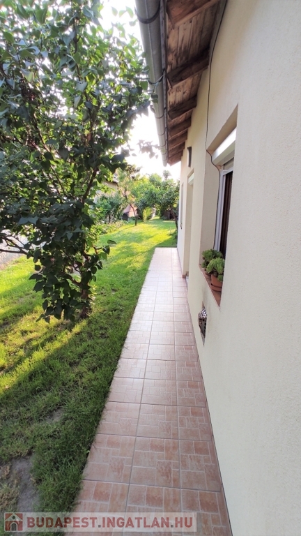 Az ingatlanhoz tartozik egy 684 négyzetméteres rendezett sík telek kert termő gyümölcsfákkal.