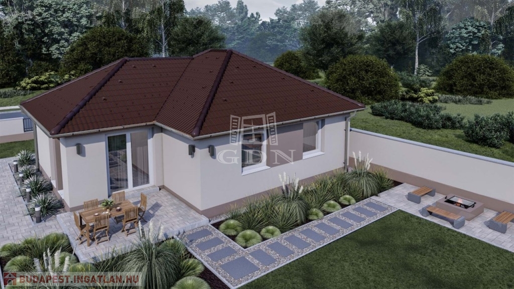 Vh-004343 Pátkán, Székesfehérvártól 10 perc autóútra, átmenő forgalomtól mentes, csendes utcában ÚJÉPÍTÉSŰ „közel nulla energiaigényű épületek követelményszintjének megfelelő” energiaosztályú, 75 m2 hasznos alapterületű, nappali+3 szobás, ÖNÁLLÓ családiház 990 m2-es telekterülettel eladó.
