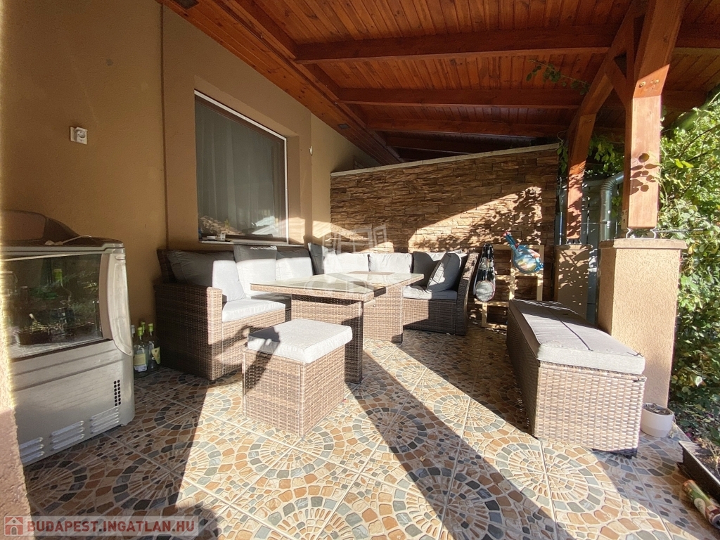 A 380 m²-es telek gondozott, parkosított, rendezett kerttel rendelkezik. A telken 5 m²-es tároló is található, mely extra helyet biztosít a mindennapokhoz. A beton födém lehetőséget kínál a tetőtér későbbi beépítésére, így a ház tovább bővíthető.