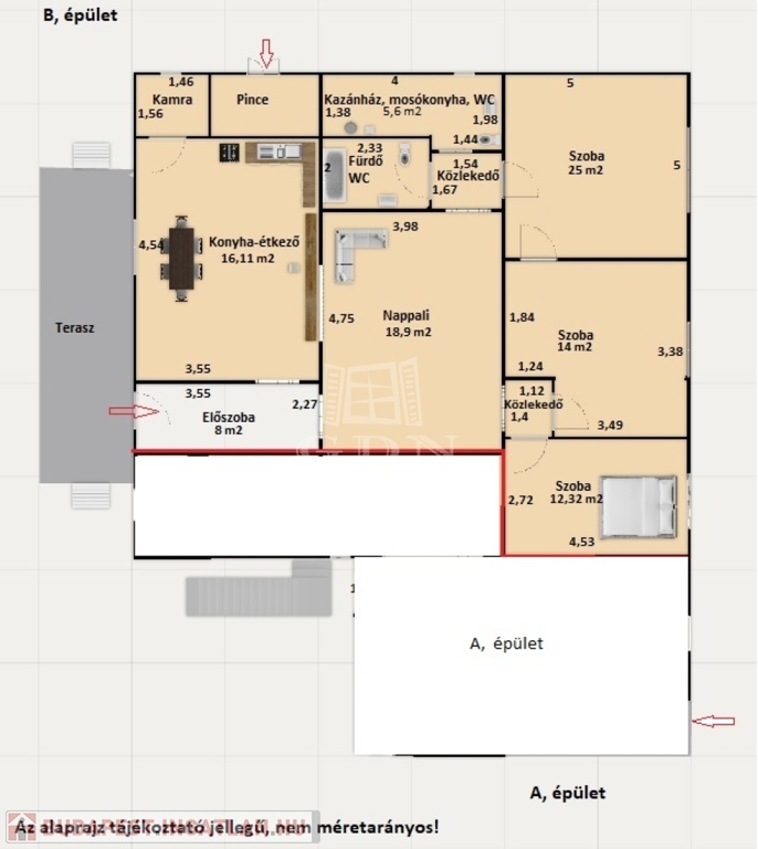 Az épület homlokzata, gondozást igényel, de remek elrendezése miatt, NAGY CSALÁD vagy VÁLLALKOZÁS számára TÖKÉLETES!