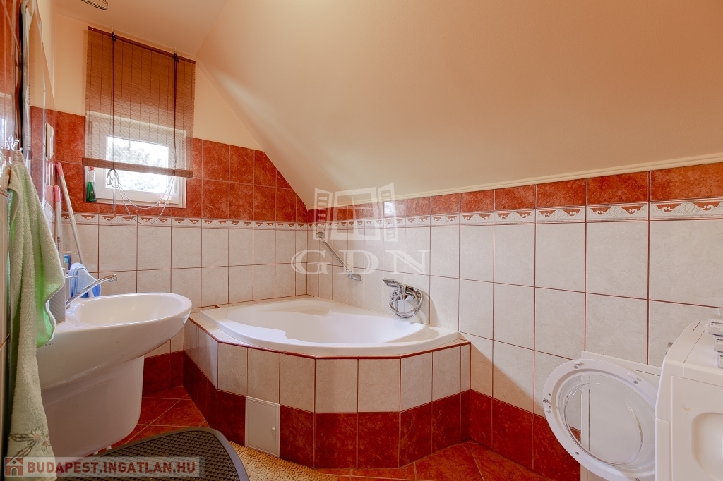 Az újabb épület 2 szintes, 2007-ben épült, beton alapra, 30 cm ytong téglából, körbe 5 cm-es dryvit szigeteléssel, beton födémmel. Ezen az épületen viszont 2022-ben tetőcsere történt, bitumenes födém helyett, Lindab cseréplemezes fedést kapott, illetve műanyag thermo nyílászáróval rendelkezik. Ez az ingatlan kiváló állapotú, folyamatosan karbantartott, dupla fürdőszobával, épített kandallóval, riasztóval felszerelt, melyhez tartozik egy közvetlen fedett gépkocsibeálló és egy medence is.