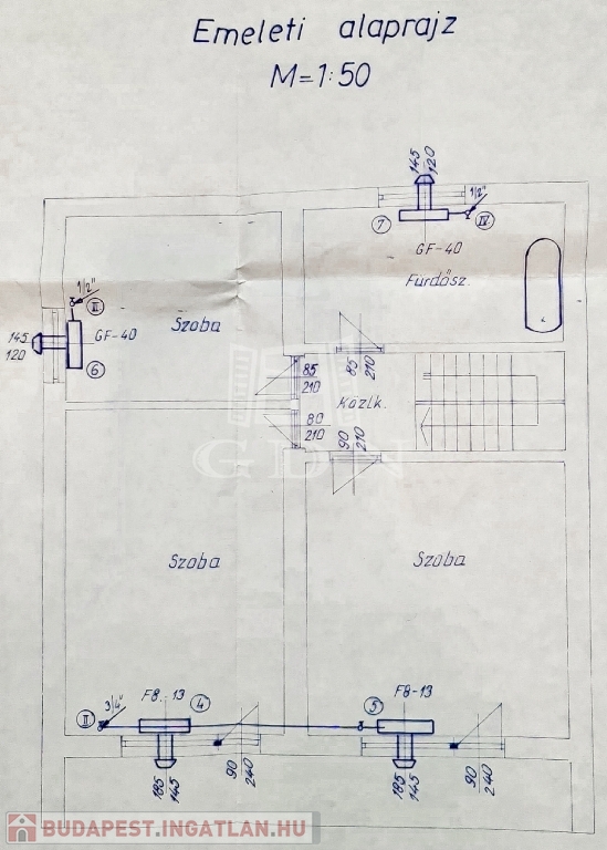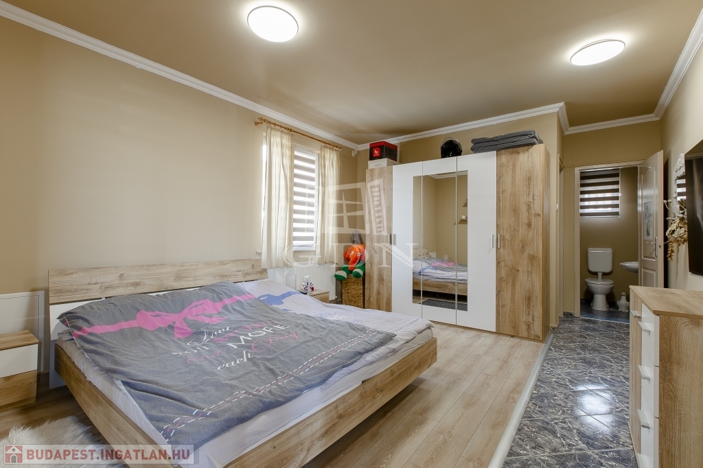 A régebbi épület 3 szintes,1983-ban épült, beton alapra épült, 40 cm-es tégla falazattal, beton födémmel, pala tetővel és fa thermo nyílászárókkal. Ingatlan részben jó állapotú, részben felújítandó, a telek utcához közelebb eső részén helyezkedik el. Az egész épület alatt pince szint van, ahol a kazánház és táróló található. A földszinten, illetve az emeleten, egy-egy külön bejáratú lakás áll rendelkezésünkre, mind két lakásban van külön fürdőszoba, konyha, étkező, nappali és szobák is.