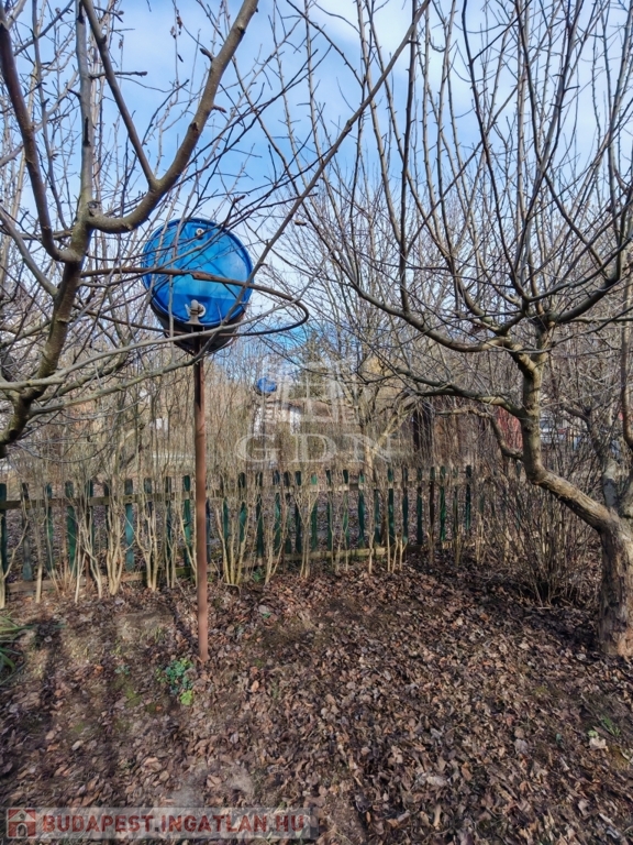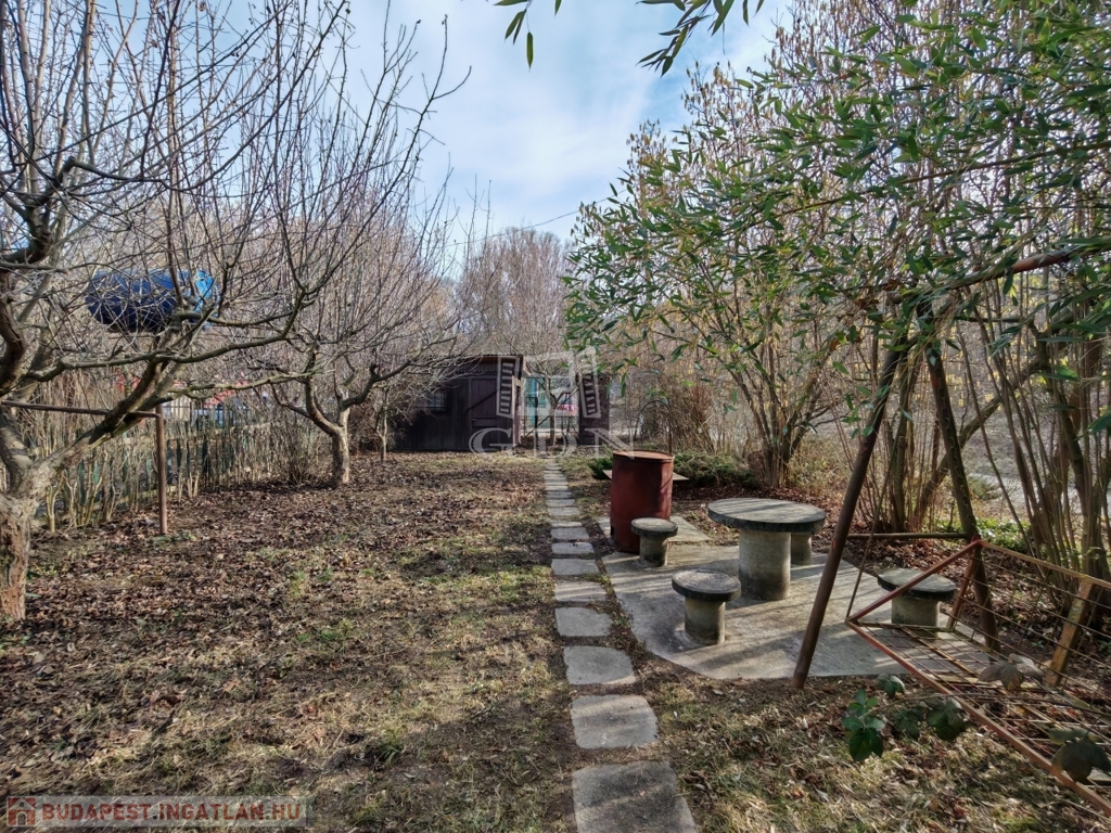 A telek végében, fa szerkezetű szerszámtároló és kültéri WC húzódik.