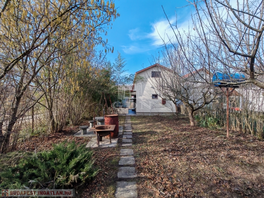 A telek sarok telek, ezért szerencsés módon, csak egy oldalról van csak szomszéd. Privát életteret biztosít. A kertben zuhanyozási lehetőség, sütögető, és bogrács is helyet kapott.