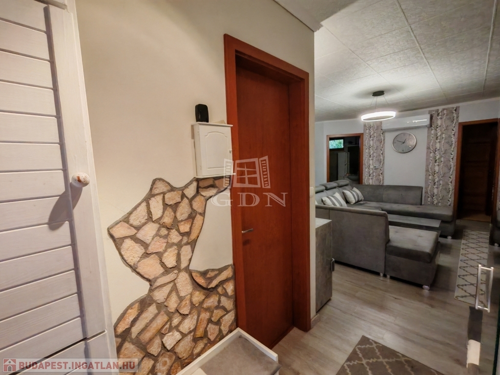 Eladó kertkapcsolatos, olcsó fenntartású lakás Pécel–Kopaszhegyen.