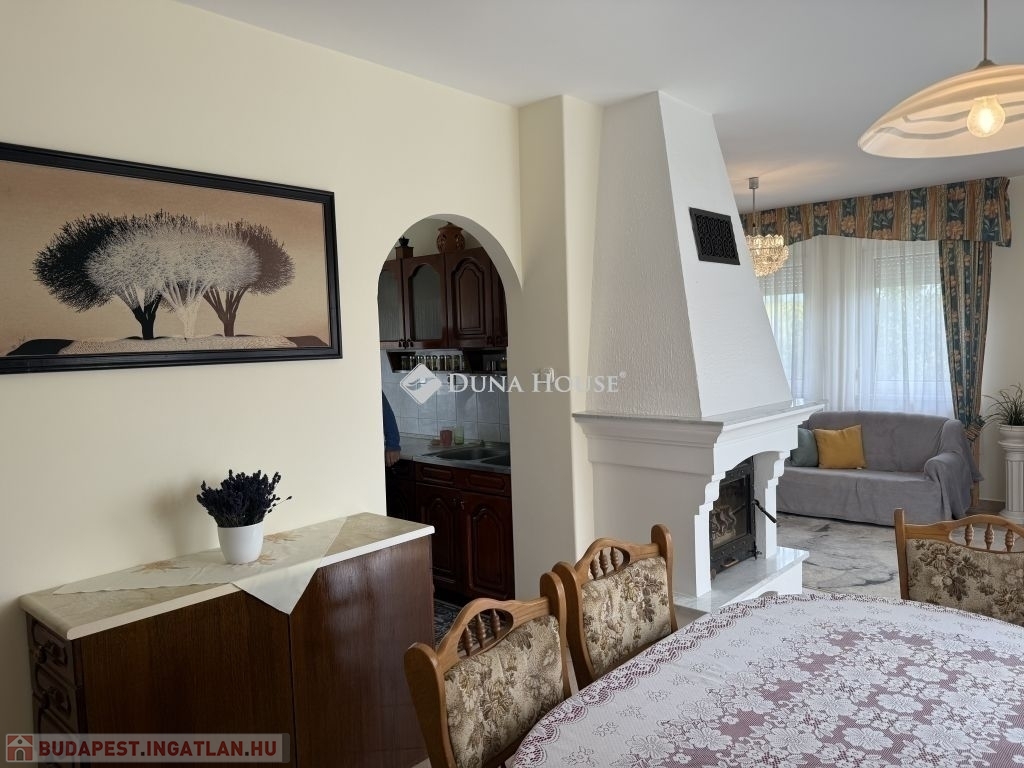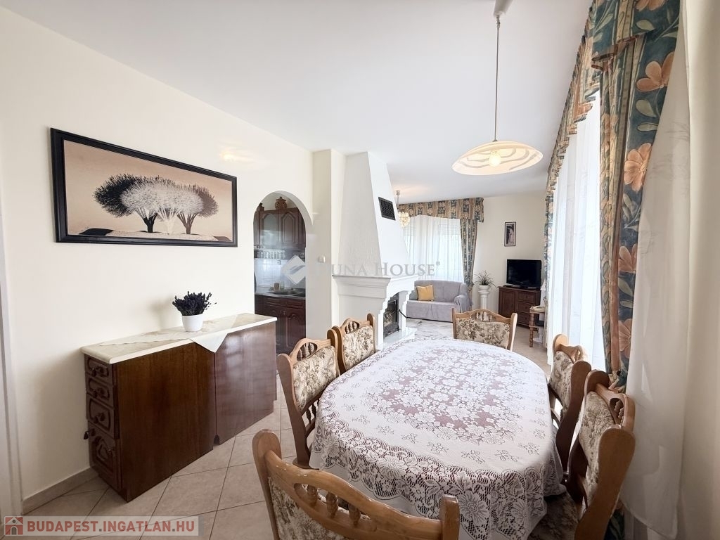 Pécs Rózsadomb városrészén, csendes és zöldövezeti környezetben kínálunk megvételre egy 2000-ben épült, kiváló állapotú, 135 m²-es családi házat 1034 m²-es gondozott telken.A felső szinten:Tágas, napfényes nappali hangulatos kandallóval, ahonnan közvetlen kijárat nyílik a teraszra, lenyűgöző panorámáva. Két külön nyíló hálószoba. Fürdőszoba káddal és zuhanyzóval, külön WC és bidé.Az alsó szinten:Egy további szoba, ami vendégszobaként vagy dolgozószobaként is funkcionálhatFürdőszoba WC-vel, tárolóhelyiség, valamint egy boltíves pince, amely ideális borospincének, zöldségek tárolására.A 16 m²-es garázs az épület része, a kertben található egy különálló, 18 m²-es kis ház villannyal, mely tökéletes lehet műhelynek, nyári konyhának.A ház fűtését gázcirkó rendszer biztosítja, de a kandallóval kiegészítve igazán otthonos légkört teremt a téli hónapokban is.Elhelyezkedése kiváló buszmegálló mindössze 5 perc sétára található, így a belváros gyorsan és kényelmesen elérhető.Ez az ingatlan ideális választás azok számára, akik természetközeli, nyugodt környezetben szeretnének élni, mégis közel a város szívéhez.Bővebb információért, megtekintésért várom hívását!