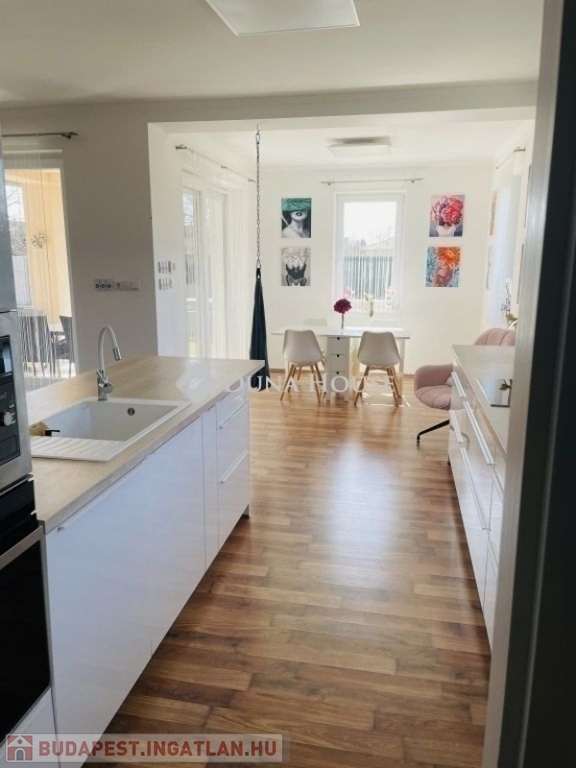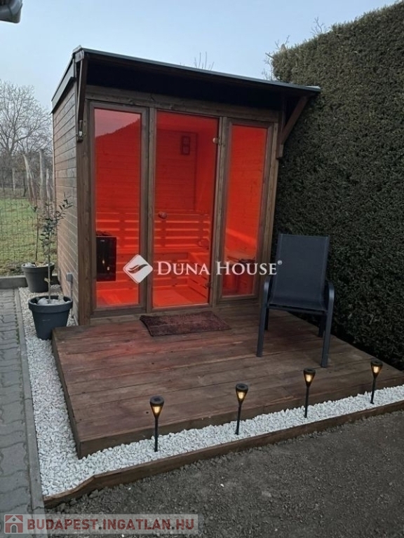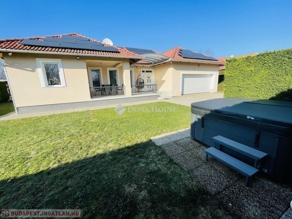 Modern családi ház PécsÚjhegyen napelemmel és dupla garázzsalPécs Újhegy csendes részén, a Barázda utcában eladó egy 2010-ben épült, egyszintes családi ház, amely ideális választás lehet családok számára.164 m² összterület 132 m² lakótér 32 m² kétállásos garázsHelyiségek: amerikai konyhás nappali étkezővel 3 hálószoba gardróbszoba 2 fürdőszoba + vendég WC kamra és háztartási helyiség 20 m² fedett teraszFőbb műszaki jellemzők:Viessmann gázkazánpadlófűtés és radiátorvízteres kandallóHoneywell helyiségenként szabályozható fűtés5,2 kW klíma3x25 Amper 7 kW napelem rendszer szaldó elszámolással 2030.12.31-igExtrák: elektromos alumínium redőnyök elektromos garázskapu és kertkapu riasztórendszer és kamerarendszer vízlágyítóUdvar: * telepített robotfűnyíró* privát kert Leylandi sövénnyel* privát játszótér* kerti sütő / grill rész* 10 m² faház* fatároló* finn szauna és jakuzzi* 10m3-es ciszterna gépesítve öntözésre* gyümölcsfákNyugodt, családi házas környezet, tágas és világos terekkel.Minden adott, hogy ez legyen az új, komfortos otthona.Érdeklődés esetén keressen bizalommal. Tekintsük meg együtt, hogy személyesen is meggyőződhessen, ez amit eddig keresett!