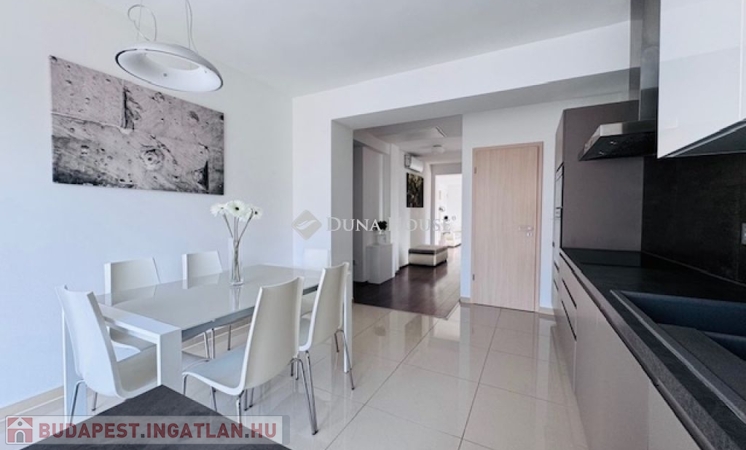 Az ingatlan belső kialakítása a kifinomult eleganciát és a modern funkcionalitást ötvözi. Három tágas hálószoba, egy ragyogóan világos, impozáns nappali, valamint egy különleges elhelyezkedésű dolgozószoba biztosítja az otthon kényelmét. Az étkező és a diszkréten kialakított kamra a mindennapok praktikumát emeli magasabb szintre.