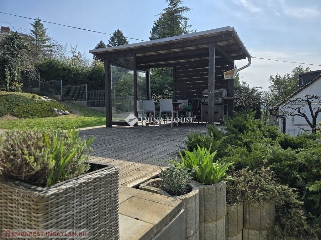Az alsó szinten mosókonyha, valamint egy szauna kialakítására előkészített helyiség található. A nappaliból és a közlekedőből közvetlen kijárat nyílik a hangulatos, gondosan ápolt kertbe, ahol egy stílusos grillterasz is helyet kapott.
