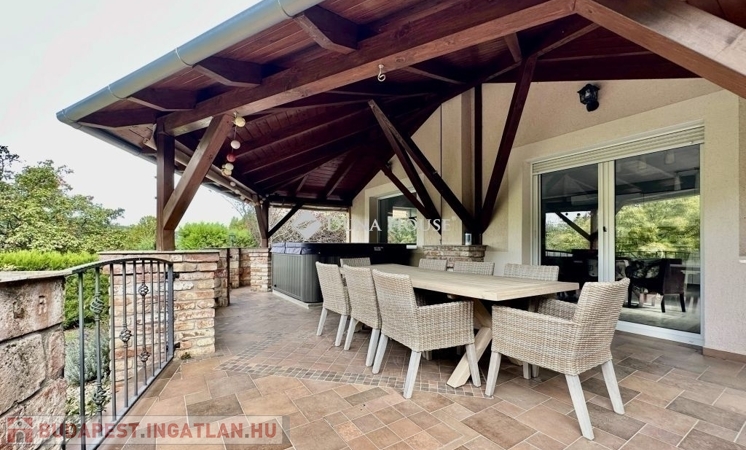 Eladásra kínálunk egy panorámás, 300 m²-es, 7 szobás, dupla komfortos, téglaépítésű , akár 2 generáció együttélésére is alkalmas családi otthont.Ne hagyja ki ezt a különleges lehetőséget, hogy a város felett, de mégis közel annak szívéhez élhessen. A mindkét fürdőszoba designja különleges figyelmet kapott, ahol a minőségi burkolatok és szaniterek mellett egyedi világítás gondoskodik a relaxáló atmoszféráról. Itt a nap bármely szakában élvezhetjük a kényeztetést és a privát wellness élményét. Fedett teraszon. Jakuzzi található.Elektromos autótöltés kiépítve. A modern, teljesen felszerelt konyha minden igényt kielégít, legyen szó akár egy gyors reggeliről vagy egy nagyobb családi vacsoráról. Az ingatlan klímával , elektromos redőnnyel felszerelt. Keressen minket bizalommal az ingatlan megtekintéséhez, és tegyen szert erre a kivételes otthonra.