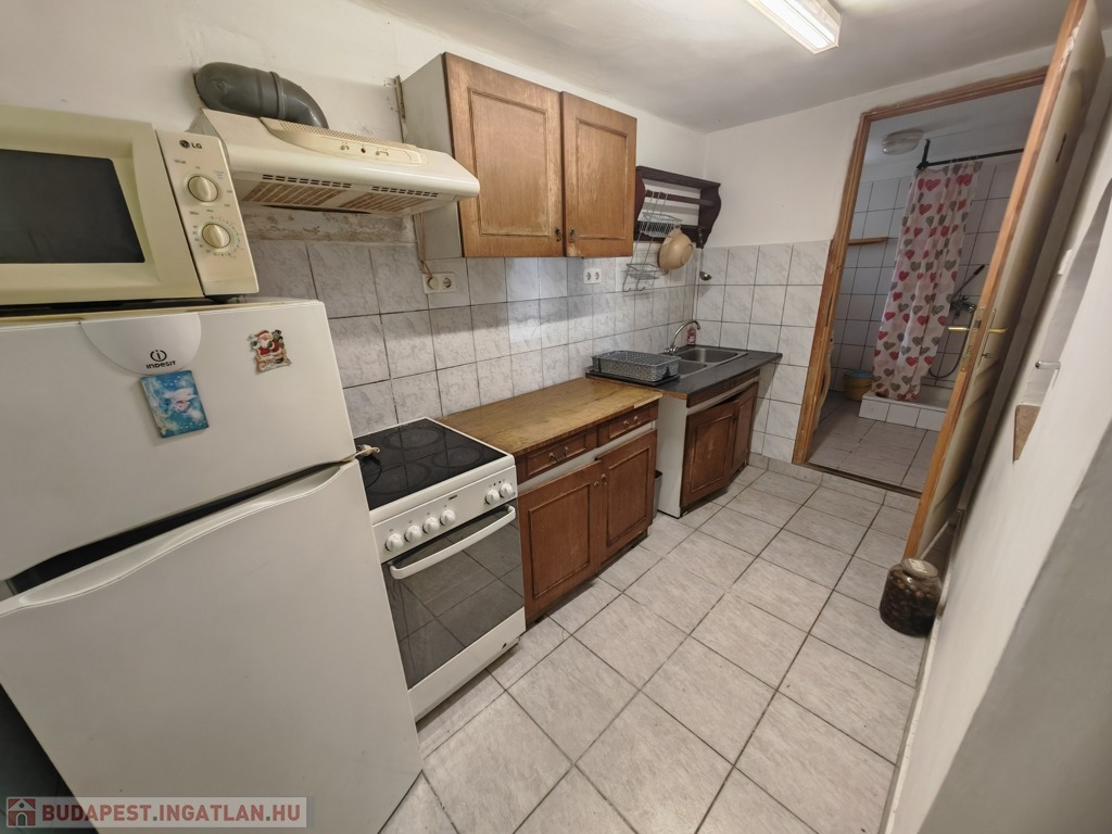 A szuterénben lévő lakás 32 m²-es, egy szoba, konyha és fürdőszoba található benne.