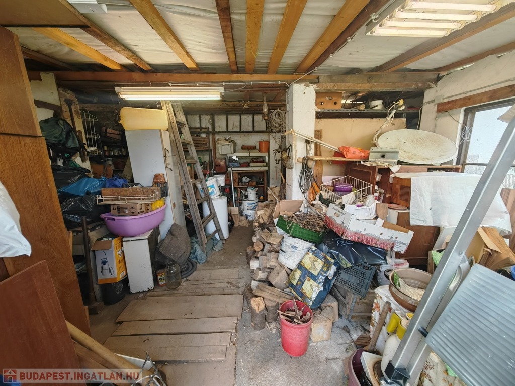 A 283 m²-es saját telken garázs és tároló is található, ipari árammal ellátva. A telek végében egy kisebb családi ház található, amelynek tulajdonosai szolgalmi joggal rendelkeznek a telken való átjárásra.