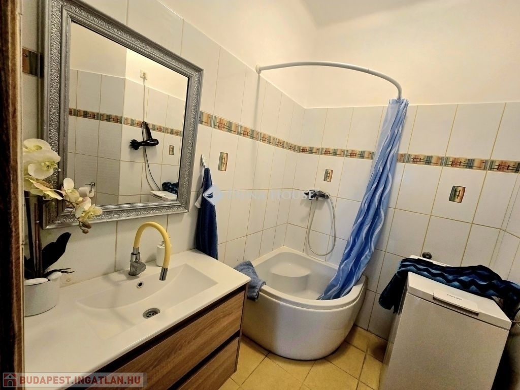 Ha Ön olyan ingatlant keres, ahol a nyugalom és a természet közelsége, valamint a modern kényelmi szolgáltatások tökéletes egyensúlyban vannak, ne keressen tovább. Ez az ingatlan nem csak egy otthont, hanem egy befektetést is kínál Önnek. Eladó kertváros családi házas övezetében, egy 96 nm alapterületű, belső két szintes, tetőtér beépítéses, ikerház fele. Az ingatlan jelenleg két különálló életteret foglal magában, de akár nagyobb család esetén a teljes terület egybe is nyitható. Az épület tetőtere beépített. A házhoz tartozó terület 410 nm, itt találunk egy egyállásos garázst és hozzá kapcsolódóan egy közel 20 nm-es helyiséget is. Ez az épület is tégla építésű. Némi ráfordítással önálló lakássá alakítható. A kertben helyet kapott még egy fedett fatárolót is, valamint egy 20 köbméteres ciszterna. Az épület tégla szerkezetének köszönhetően kiváló hőszigetelést biztosít, de a keleti oldal szigetelést is kapott. A nyílászárók cseréje 2010-ben történt, korszerű, műanyag ablakokra. A napfényes terek növelik az otthonosság érzetét. Az otthon melegéről és kényelméről háromféle fűtési lehetőség gondoskodik: gáz cirkó rendszer, klíma berendezés és egy hangulatos cserépkályha teszi teljessé a belső komfort érzetet. Alsó szinten 3 szoba és egy tágas konyha - étkező található található 2 fürdőszobával és a két külön lakrész miatt + egy kisebb konyhával. Ez az ingatlan nem csak azzal hívja fel magára a figyelmet, hogy kiválóan meg van építve, hanem azzal is, hogy napfényes helyiségekkel, valamint egy lenyűgöző kertre néző kilátással rendelkezik, illetve remek lokációval bír. További kérdések esetén, vagy megtekintésért hívjon!