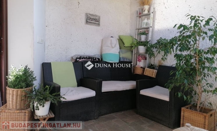 A házhoz fedett terasz, gondozott udvar tartozik. Parkolás az utcán a ház előtt mindig lehetséges.