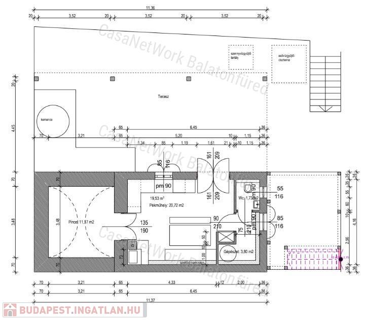 4413 m² terület, 72 m²-es vendégház 50+15 m2-es teraszokkal (földszint+tetőtér)