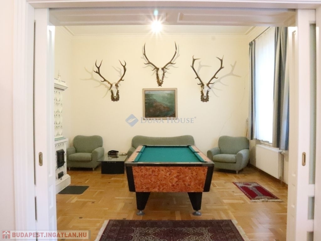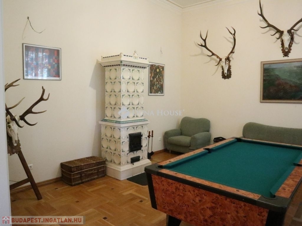 Főépület (306 m2): 3,65 m belmagasság, hatalmas ablakok, napfényes terek. Ékköve a biliárdszobában található, egyedi, kézzel festett Zsolnay majolika cserépkályha.