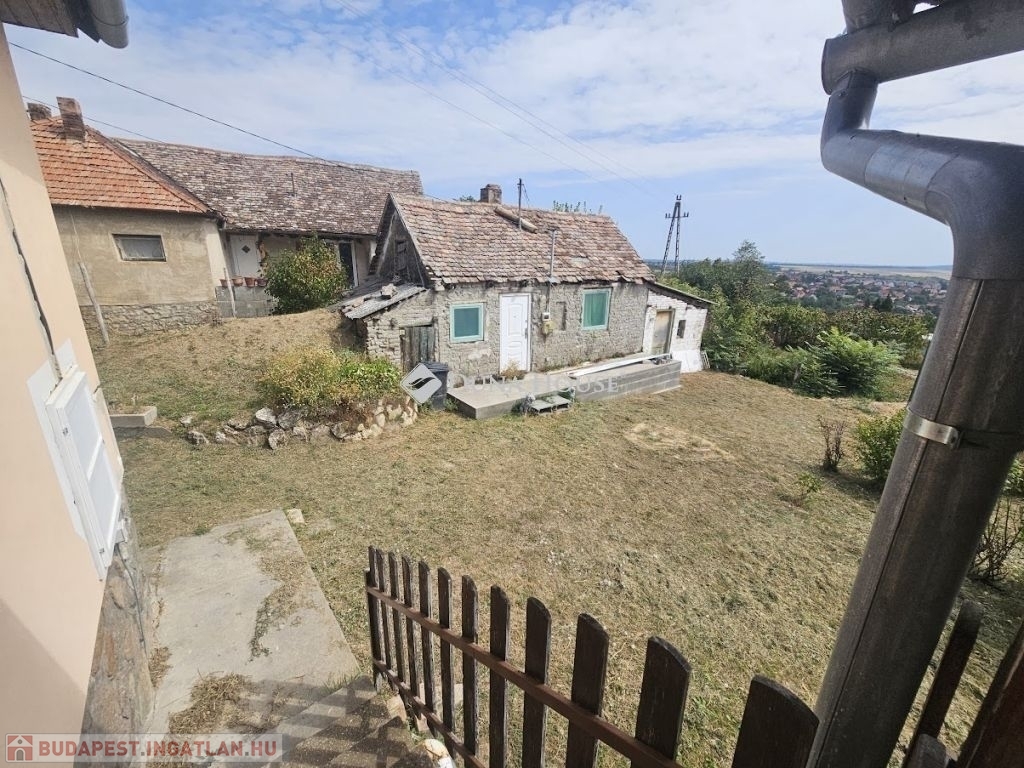 ELADÓ PANORÁMÁS EGYSZINTES HÁZ PÉCSVÁRODAN !Eladó egy panorámás 1142nm-es telken található, egy szintes , cca. 110nm-es családi ház Pécsváradon a Temető utcában. Az ingatlan felújítása már megkezdődött:- újszerű cserép fedés,- új villany vezetékek, H-tarifás mérő kiépítése,- 2db nagy teljesítményű klíma beépítése, ill. 2db előkészítése,- új műanyag nyílászárók, - Új radiátorok, A ház jelenleg konyha-étkező, nappali, 2db szoba, fürdő, wc, előtér elosztású, de könnyedén kialakítható még egy hálószoba.Az ingatlan 2 bejárattal rendelkezik, az egyikből kialakítható egy kazánház jellegű helyiség mely így megközelíthető lesz kintről és a nappaliból egyaránt.Fűtését tekintve vegyestüzelésű kazánnal vagy klímákkal megoldott.A ház tetőtere beépíthető, így további szobák kialakítása is lehetséges. Az udvarban található egy melléképület, mely 2 szobából áll, a villany vezetékek cseréje már itt is megtörtént. Tehermentes és szinte azonnal birtokba vehető.További információkért keressenek.