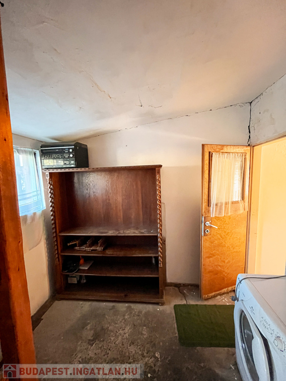 A ház belülről rendben van, albérlők lakták. Ami még kitűnhet a képekből, az az, hogy a 2 szoba mellett egy galéria is része a nappalinak.