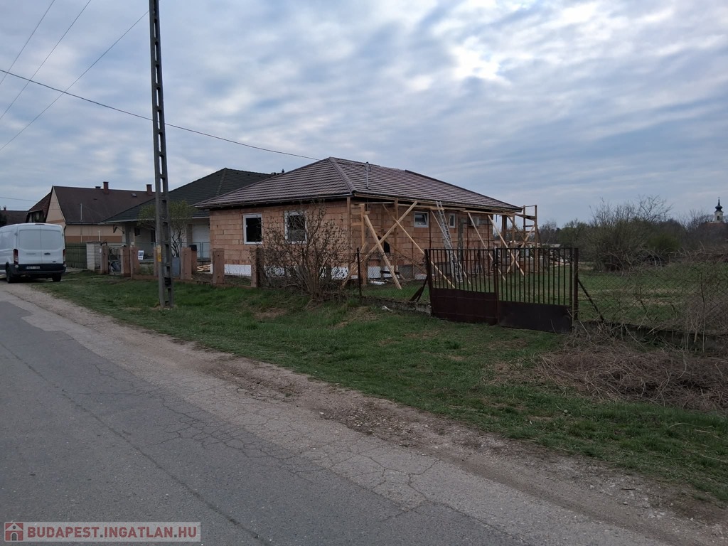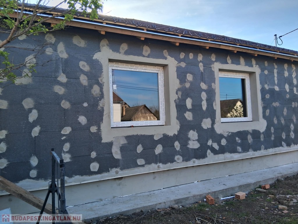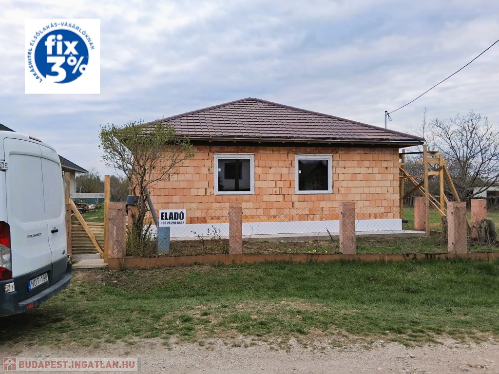 A ház alapterülete 120 m2, a telek 2300 m2.A telken bőven van hely plusz melléképület, garázs, kerti tároló, stb. kialakításához. Elosztása: 3 szoba, plusz egy nagy légterű amerikai konyha-nappali, egy nagyobb, családi fürdőszoba (kád+zuhany), és a szülői háló mellett egy kisebb fürdőszoba (csak zuhanyzó). Valamint egy háztartási helyiség is van az épületben, itt már előkészített kiállások a mosó-és szárítógép számára. A ház 30as Porotherm téglából épült, erre 15 cm vastag grafitos hőszigetelés került, a födémbe 30 cm padlás szigetelés került.A fűtést, melegvizet és a hűtést korszerű hőszivattyú biztosítja, melyhez gazdaságos H tarifa is rendelekzésre áll. A tetőszerkezet kialakítása lehető teszi a későbbiekben napelem rendszer telepítését, de ez már a leendő tulajodnosra vár.