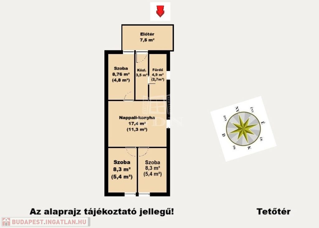 • Tetőtér: konyha-étkező, fürdőszoba, 3 szoba