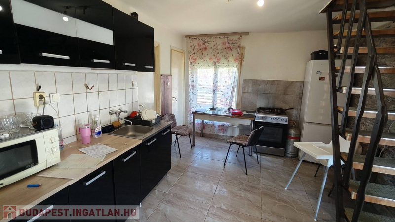 Földszinten Konyha ,nappalival , wc fürdő, kamra kialakítású.