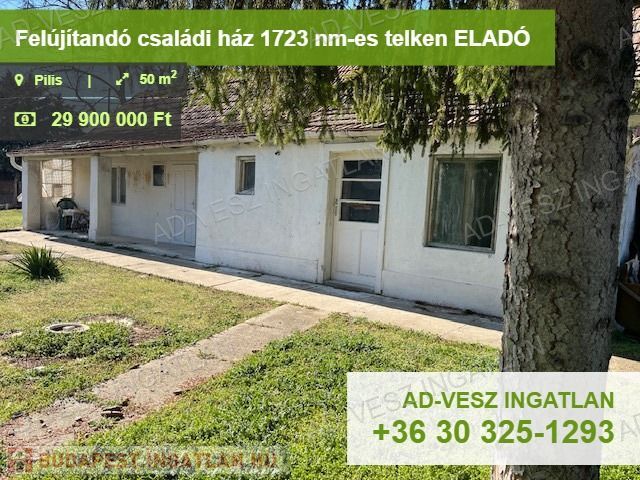 Eladó Pilis szívében egy felújítandó vagy bontandó családi ház.