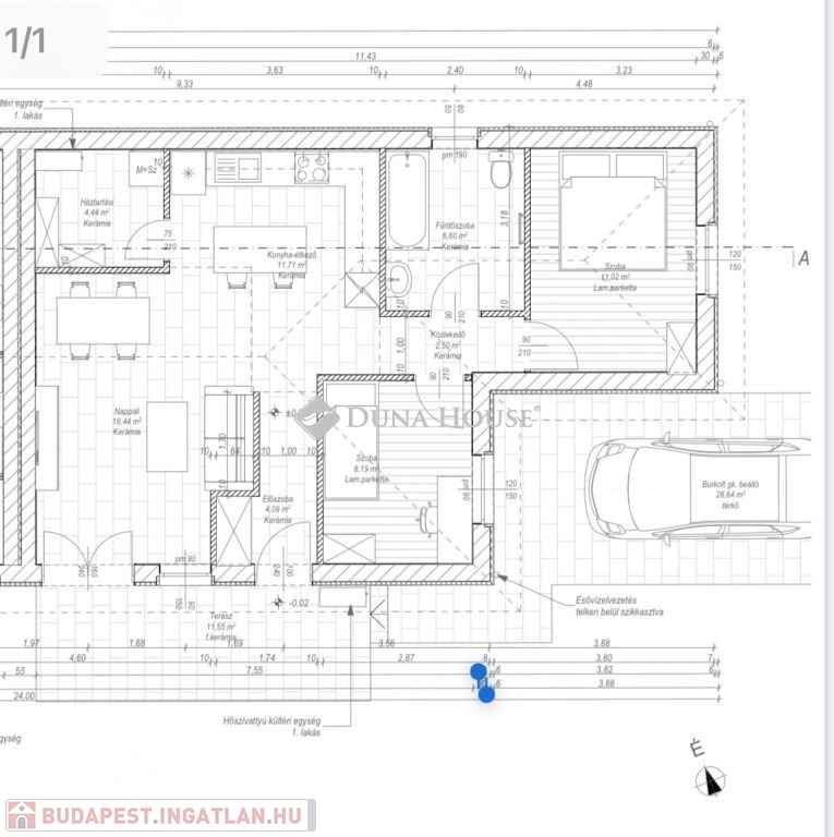Kialakítása: 2 szoba, tágas amerikai nappali konyha, háztartási helyiség, előtér, közlekedő, fürdő+wc, nyitott terasz.