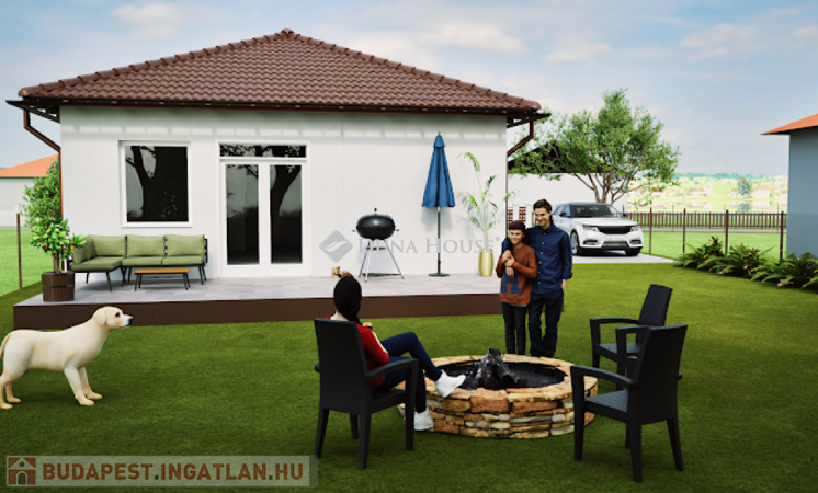 Kialakítása: 2 szoba, tágas amerikai nappali konyha, háztartási helyiség, előtér, közlekedő, fürdőszoba, külön wc, gardrób, nyitott terasz.
