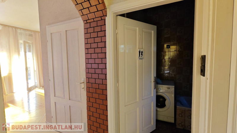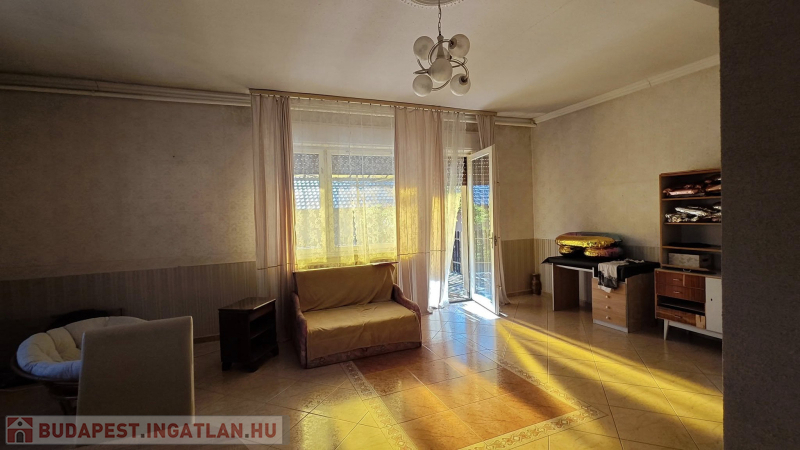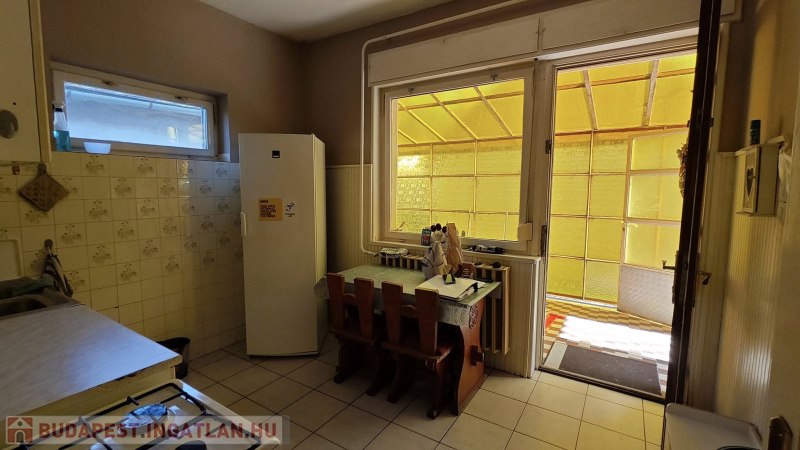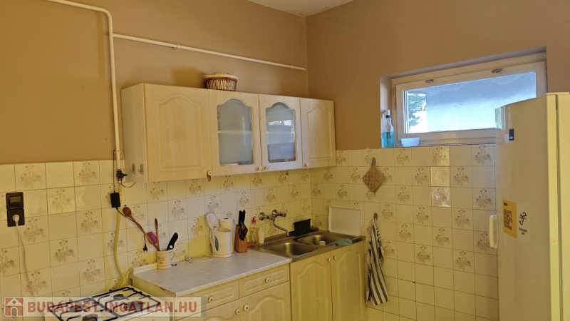 Konyha kerti rész is adott. Az udvar parkosított, térkövezett , kovácsolt vas kerítés utcafront felől. Minden közmű adott.