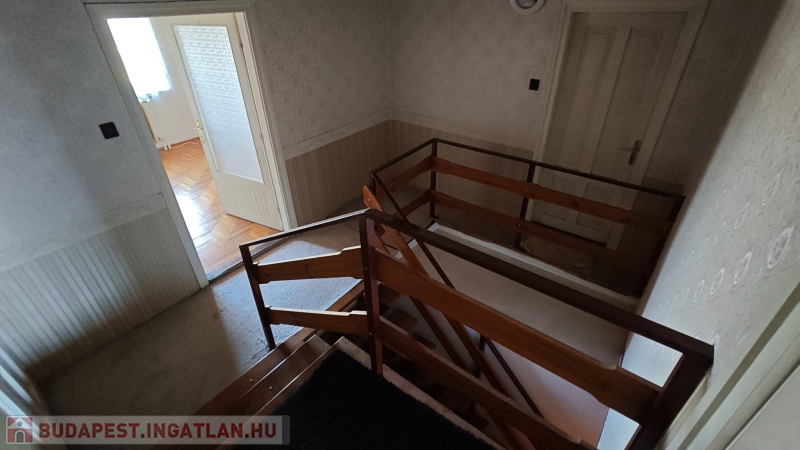 Ebédlő , konyha ,kamra fürdő wc-vel kiosztással ,illetve 3 háló az utca felőli oldalon , és a padlástérben 2 nagyobb méretű szoba adott.