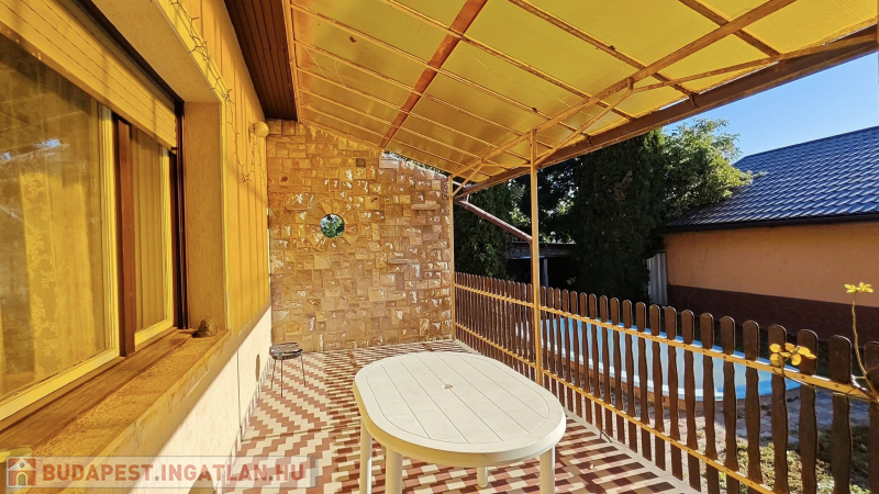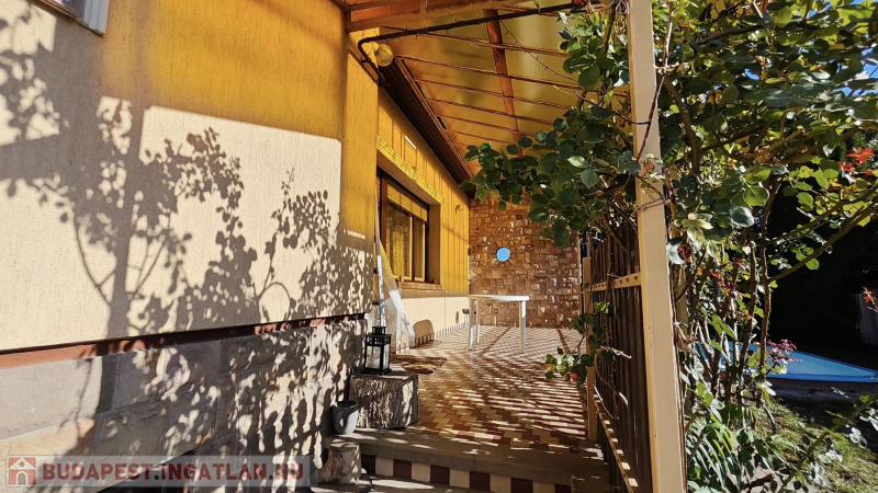 A garázs és a kert kapu elektromosan nyílik. A lakótérben nagy méretű nappali mely kert kapcsolatos teraszon keresztül a medencéhez ki lehet járni.