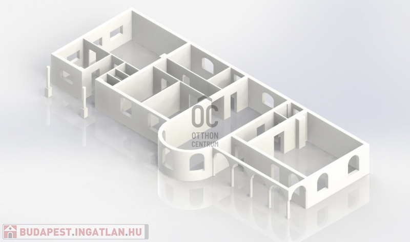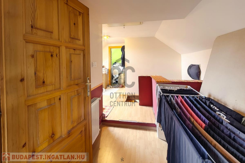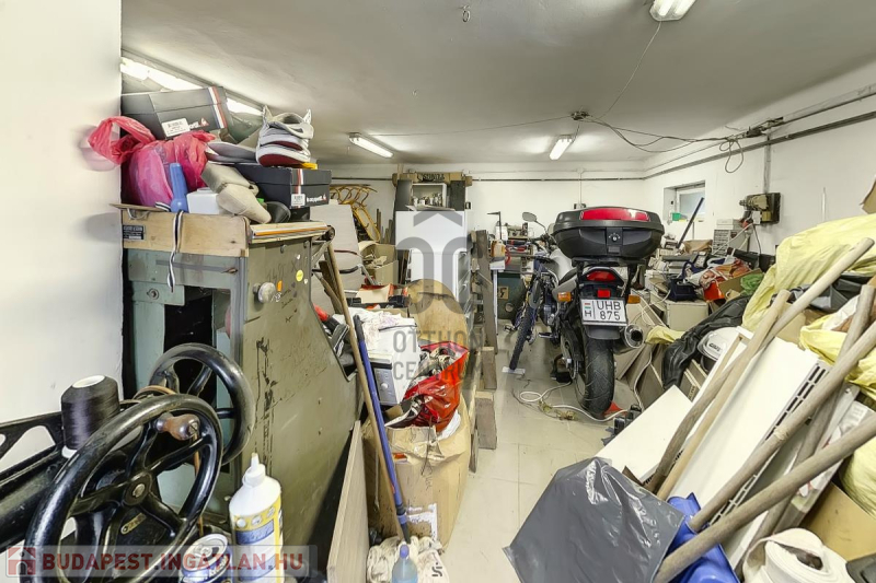 Ház: 2 bejárat így külön is válaszhatóan , 2 szintes , tégla , klasszikus 2 generációs ház , 3 nappalival + 5 hálószobával , 2 fürdővel , nagy műhellyel és garázzsal , tetőterasszal befejezésre váróan .