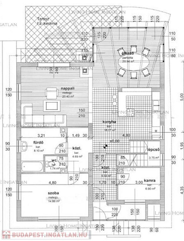 Tetőtér: beépített padlástér, mely szinte teljes értékű lakótérként funkcionálhat, hiszen parkettázott, fűtött, szigetelt. Ideális „játszótér” gyerekeknek. Alacsonyabb belmagassága miatt a terület nincs hozzáadva az összes lakótérhez.