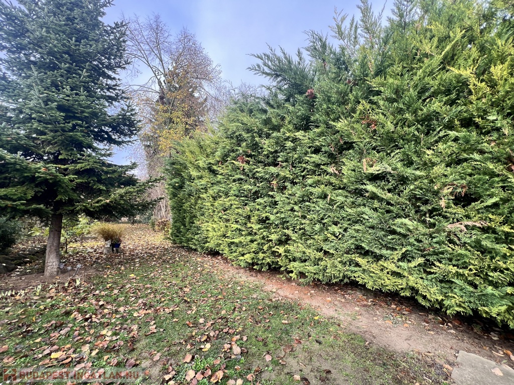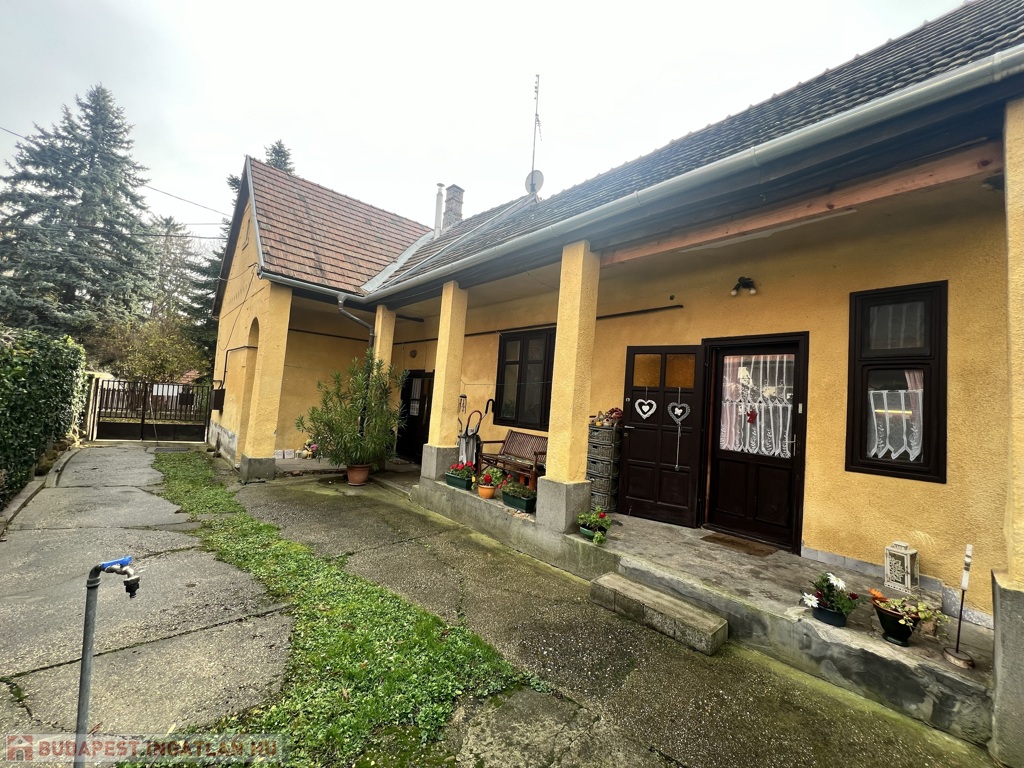 Eladó Pilisborosjenő egyik csendes, zöldövezeti utcájában egy két külön bejáratú lakóegységből álló ingatlan, amely igény szerint egy nagy családi házzá alakítható. A ház egy 540 m²-es, intim kerttel rendelkezik, ahol gyümölcsfák, málnabokrok és fügék is megtalálhatók.