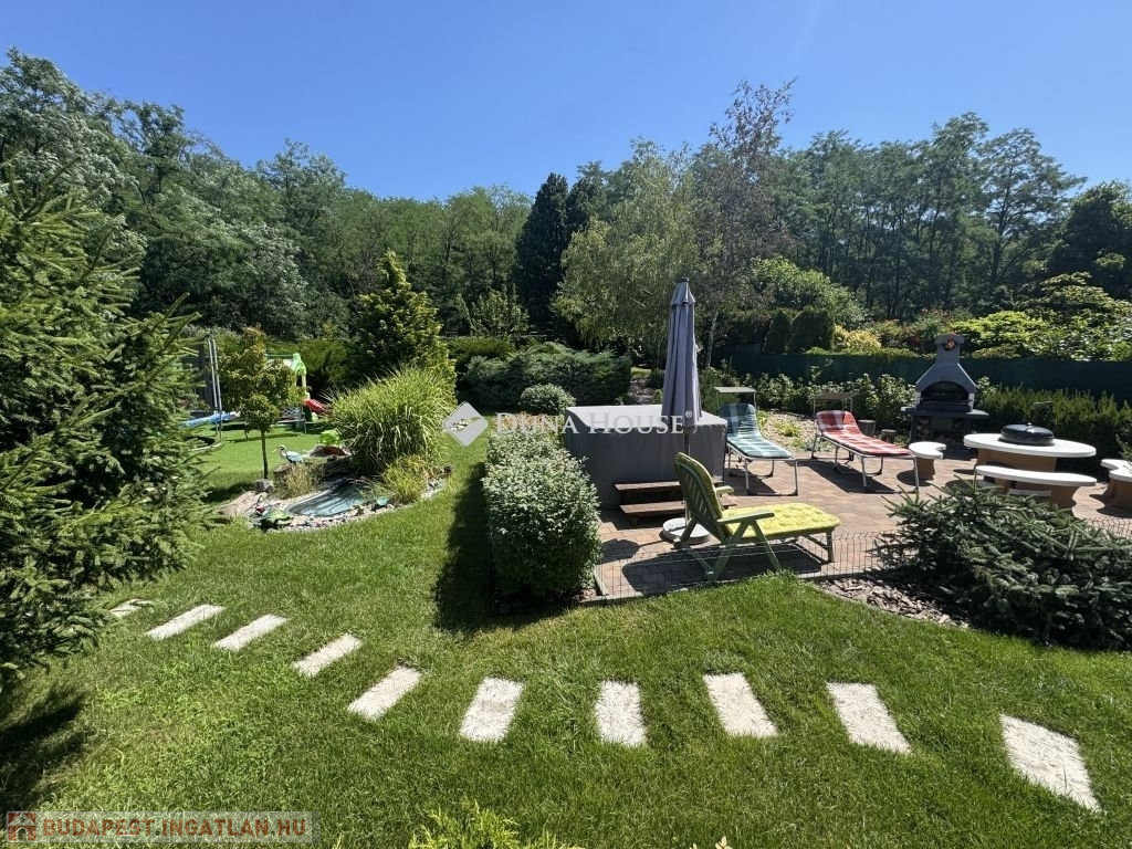 A kert igazán KÜLÖNLEGES, gyönyörűen gondozott: automata esőérzékelős ÖNTÖZŐRENDSZER, grillező, bográcsozó, 4 személyes kültéri JAKUZZI. A telek végéből közvetlen ösvény vezet az ERDŐBE, a környék TURISZTIKAI nevezetességei (Dévényi Antal kilátó, Gomba-szikla, Ferenc-forrás) perceken belül elérhetők.