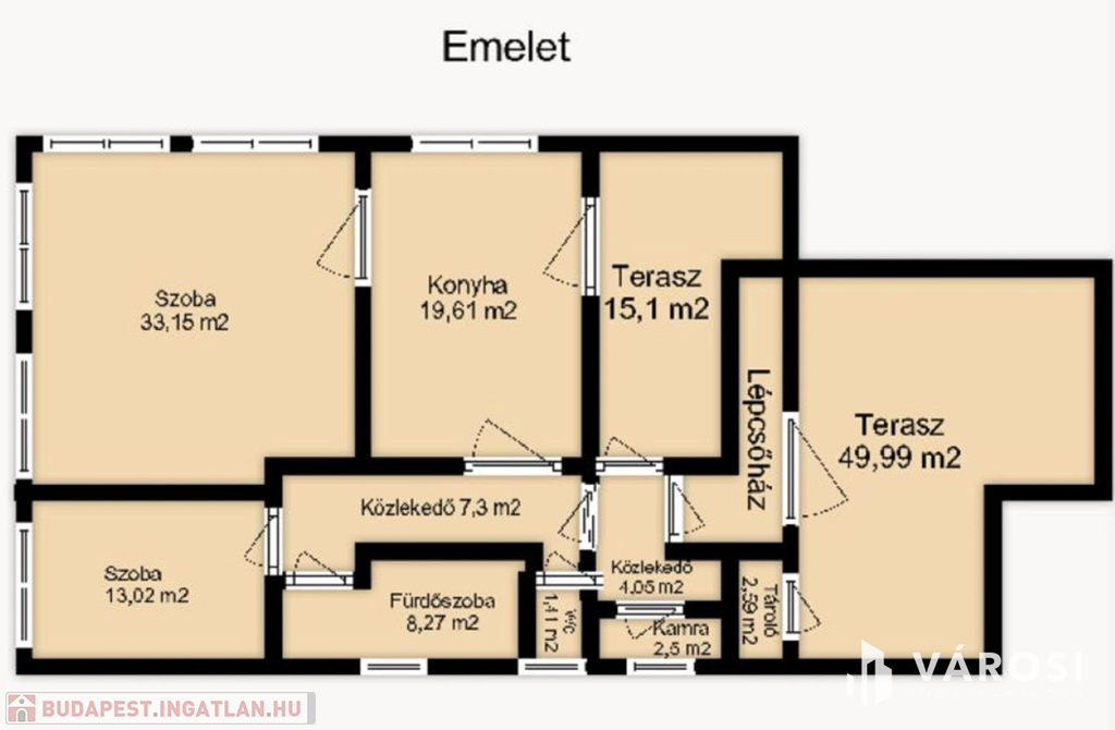 - két terasz (50 m² + 15 m²)