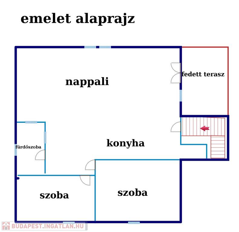 *Ezen a szinten a nyilászárók műanyagok, padlófűtéses hőleadók lettek kialakítva, (a szobákban lapradiátor) így a hőérzet is kedvezőbb.