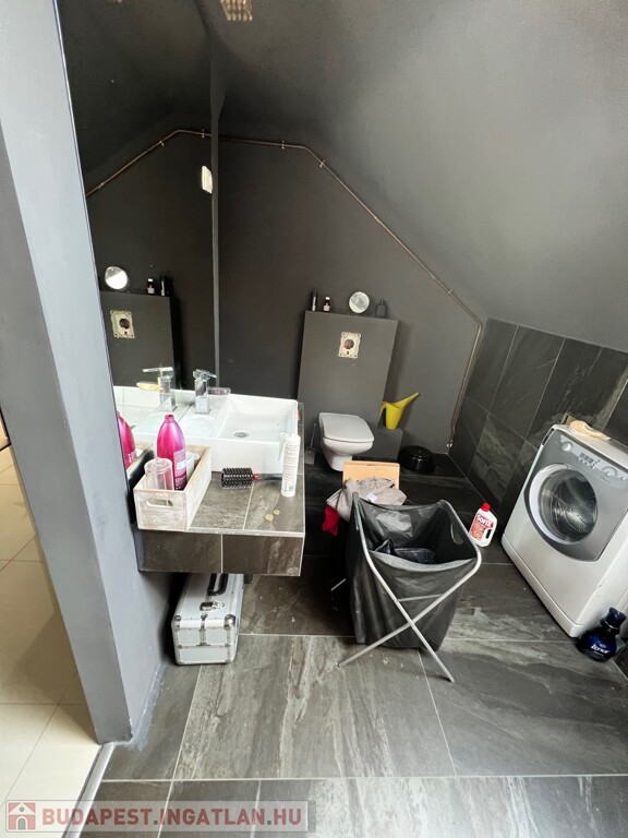 A családi ház több ütembe készült, a tetőtér kb 10 évvel ezelőtt lett kialakítva ami igen modern stílust kapott.